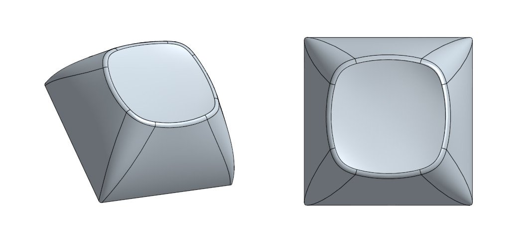 Another important factor I worked on is the smoothness of the dish. I’m not talking about the texture but the actual geometry. It’s hard to explain without feeling it on your fingertip, but most of the spherical top keycaps I’ve tried have very faint inconsistencies in the shape of the scoop. Creating a perfectly smooth surface out of a not perfect circle turns out to be quite the task, anyway for now you’ll have to trust me on this, the new scoop is so darn smooth (maybe you can tell from the pictures).