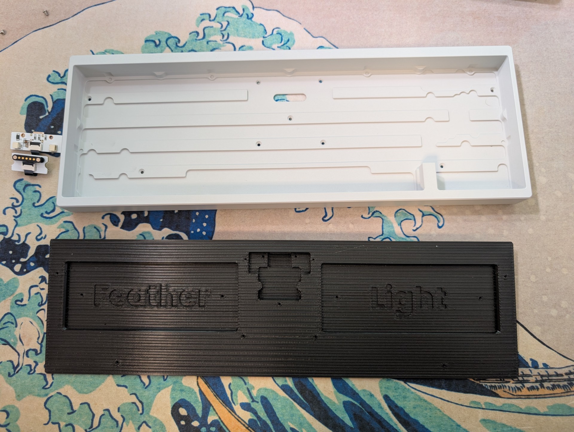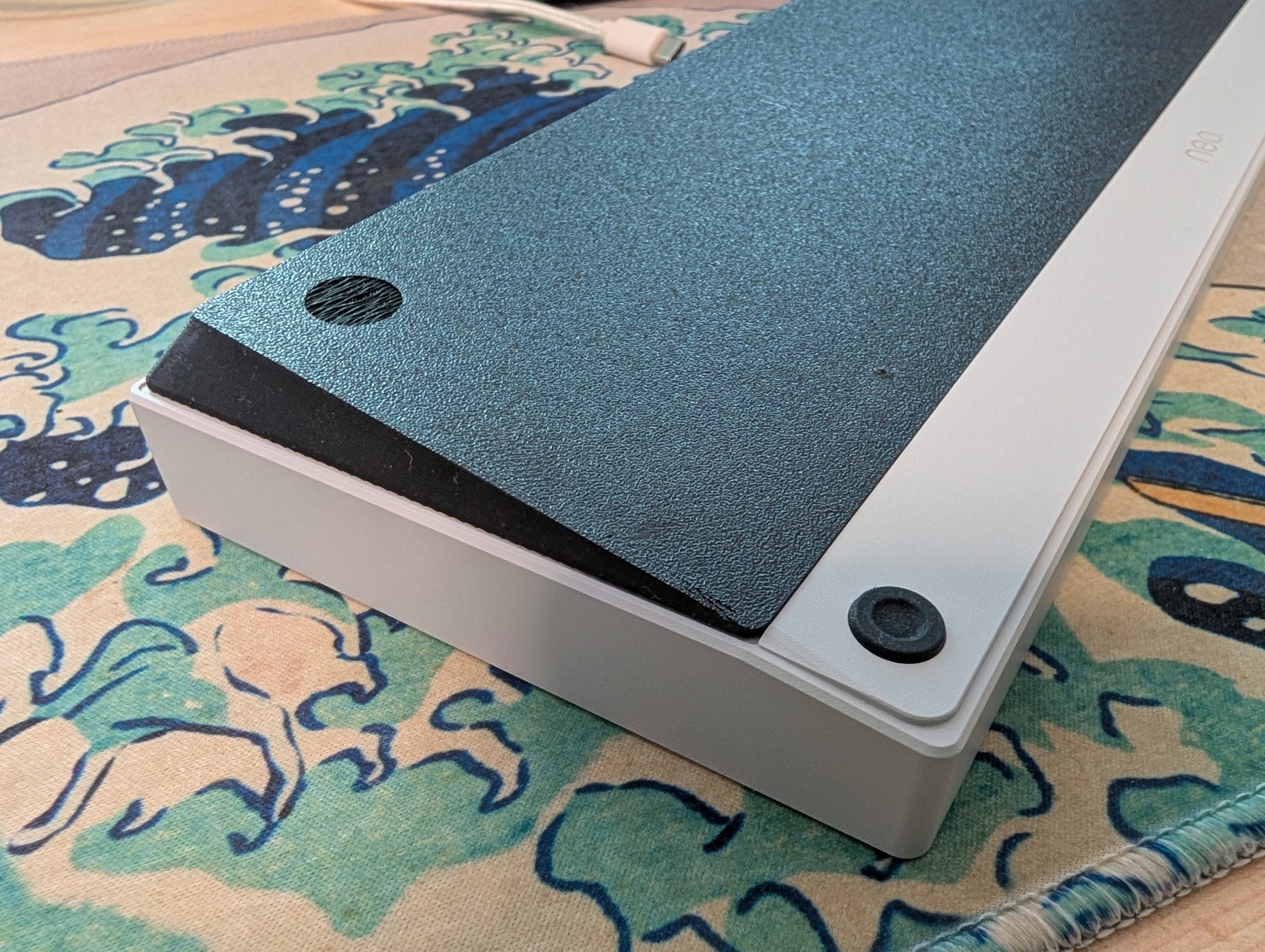Personally I have two main use cases: for heavy coding, with the keyboard straight in front of me; and for CAD and design, where I keep it slightly on the left to have better reach on the mouse. I switch between the two configurations frequently, and having such a heavy slab of metal makes the transition fatiguing. So I did the only sensible thing: I 3D printed a lightweight bottom case replacement. In doing so I found out that on top of the brass they also added two steel plates for additional ballast, just in case you dropped the Neo65 and didn’t reach the center of the Earth at first try.