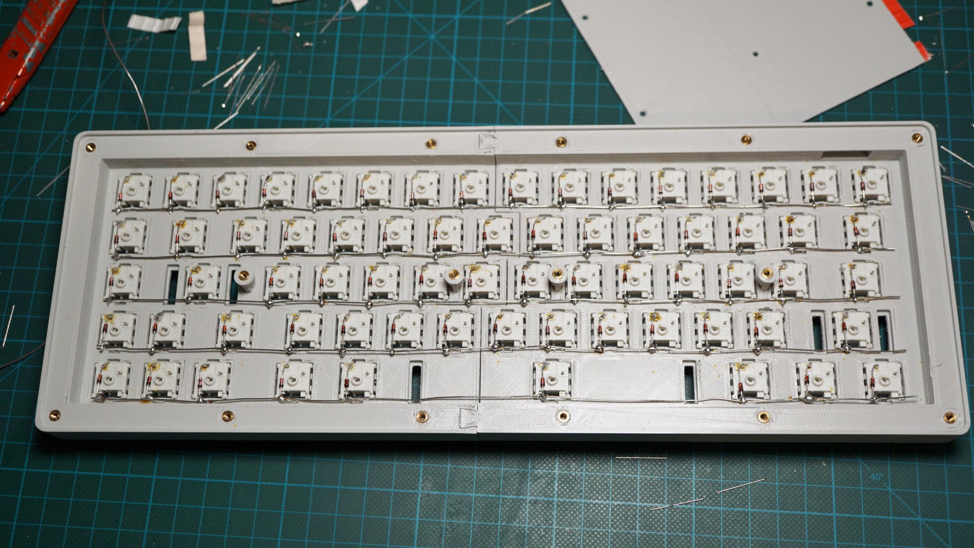 Since there’s no PCB holding the switches you may want to add a drop of hot glue for each switch so they won’t snap off when removing keycaps.