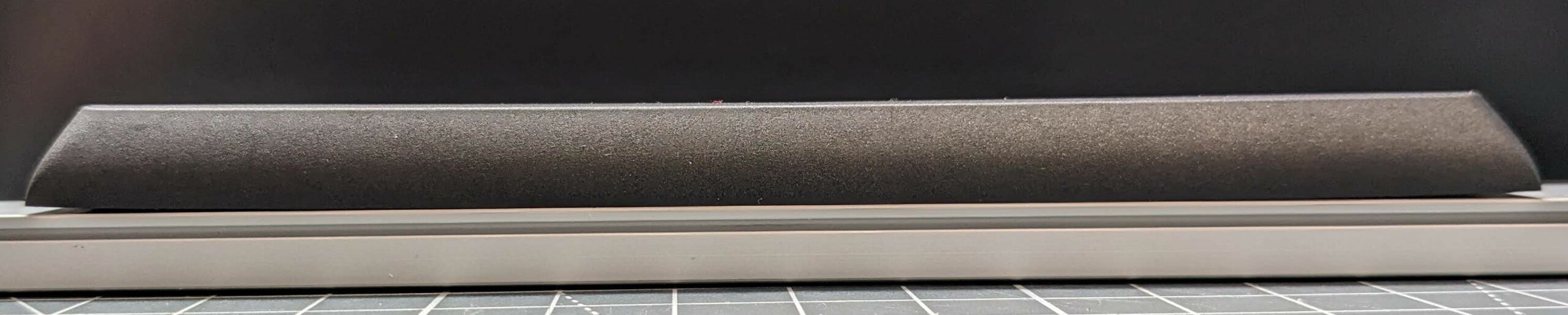 The problem here is that you have one mold but a limitless number of colors and pigment changes the characteristics of the resin. I’ve noticed that black (and dark colors in general) shrinks more than light colors. The beige spacebar is almost perfect for example, but on the 7U black one you can certainly see some bent on the far ends.