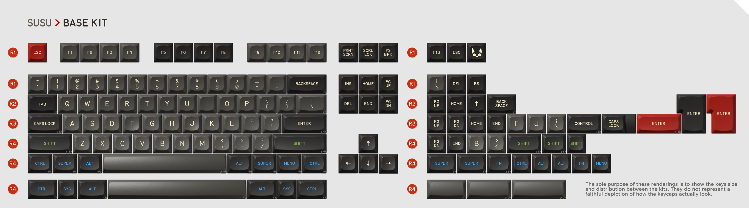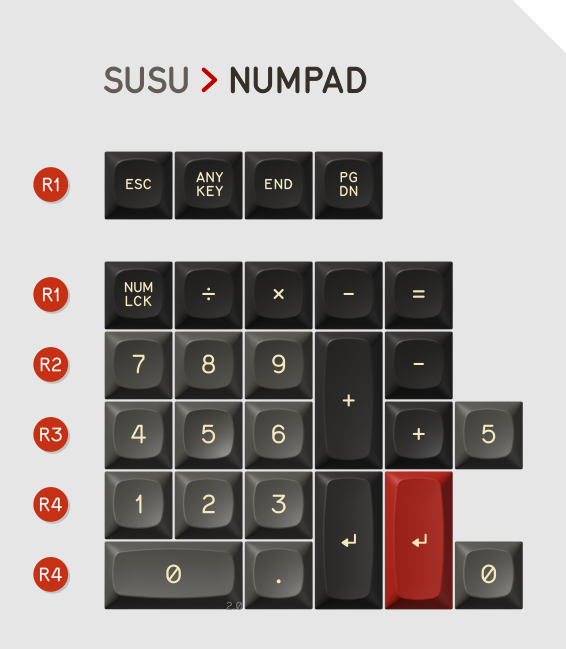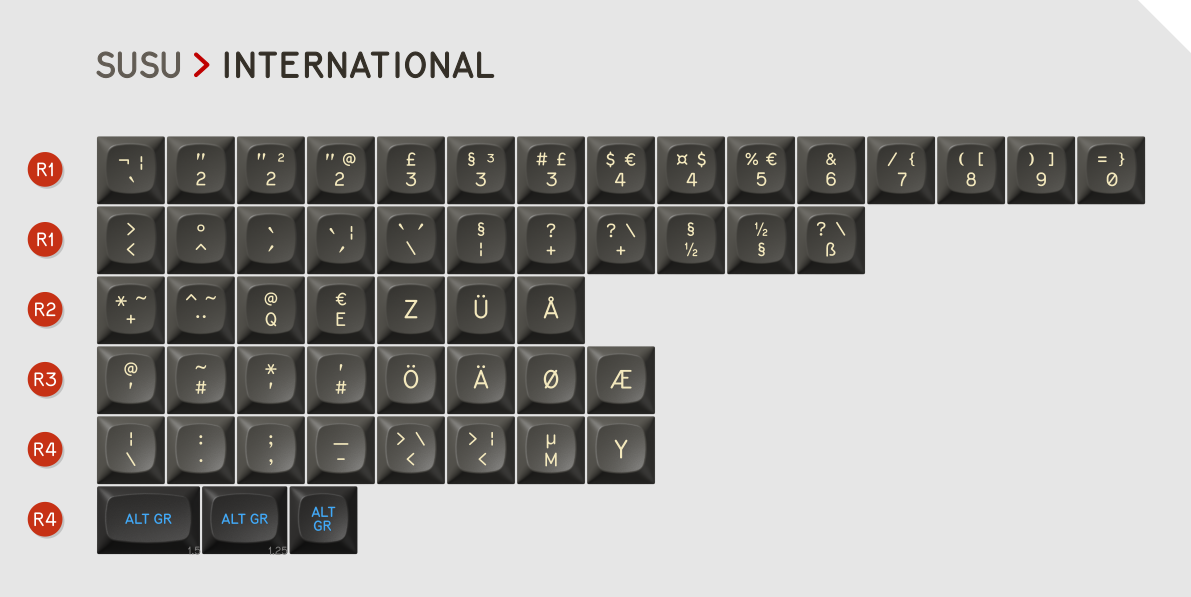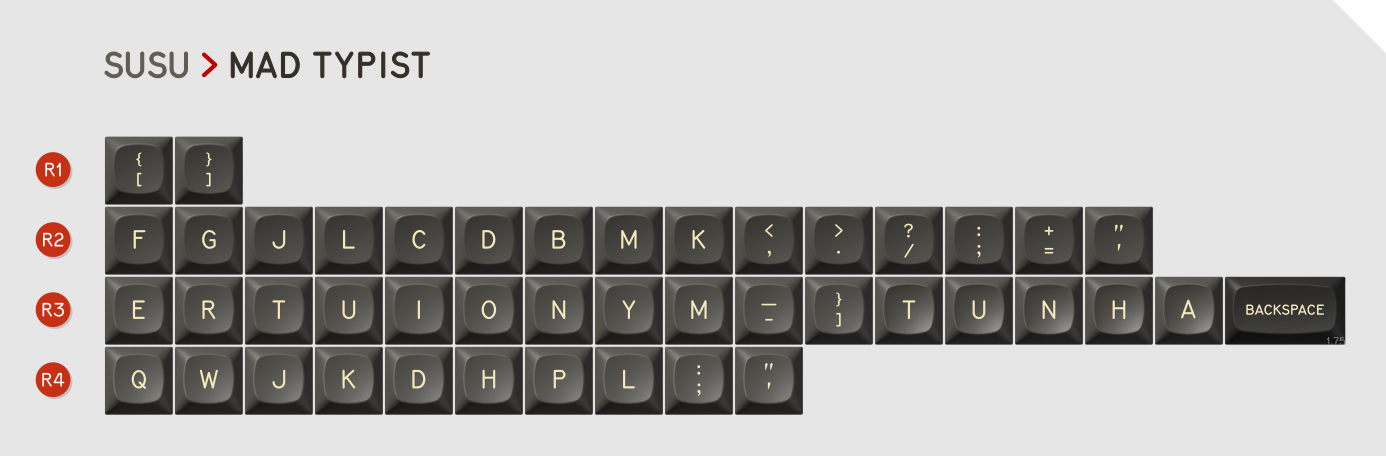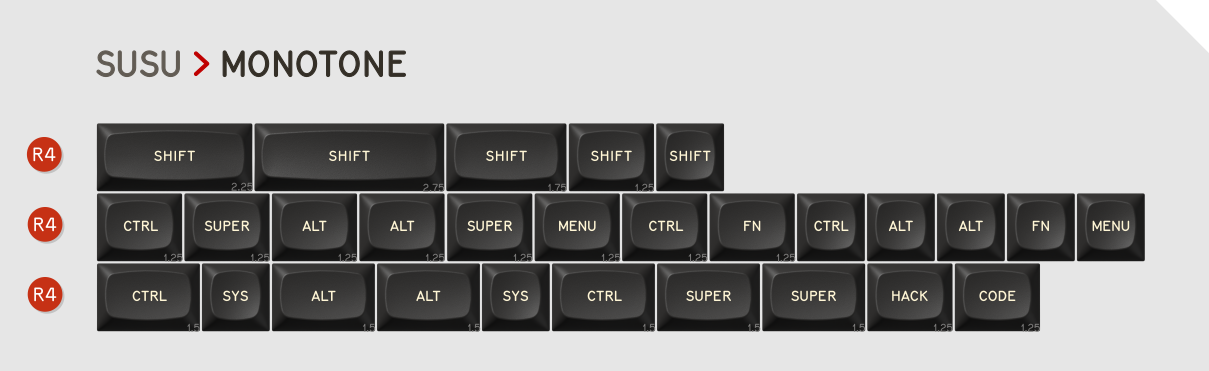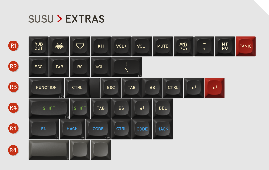 - Row profile is R1-1-2-3-4-4. Row 5 (the bottom modifiers row) is in the cards for future release.
