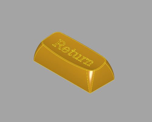 You probably have noticed the last few options, they are to add a legend to the keycap. Support is rudimentary at the moment but you can set text and font and it will be carved from the top of the model like so: