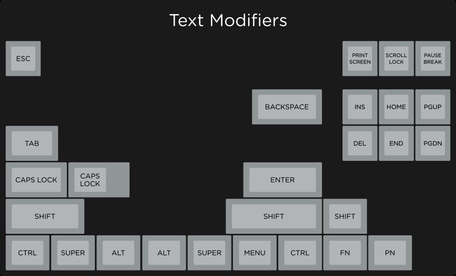 During the last few years we had quite some iterations of this set and I never took the time to catalog all the keycaps that have been produced. So, it took me some digging into the many backups but I can ultimately show you all the Granite keys that left the Signature Plastics factory lane (excluding blanks) with a good 99% approximation.